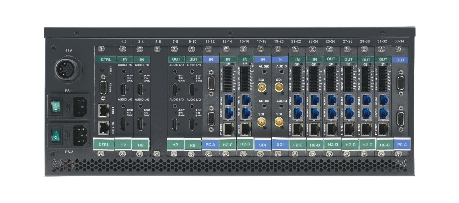- 輸入和輸出模塊類型可以以2為增量進行混合和添加,從而創(chuàng)建2×32、32×2或兩者之間的任何配置的矩陣