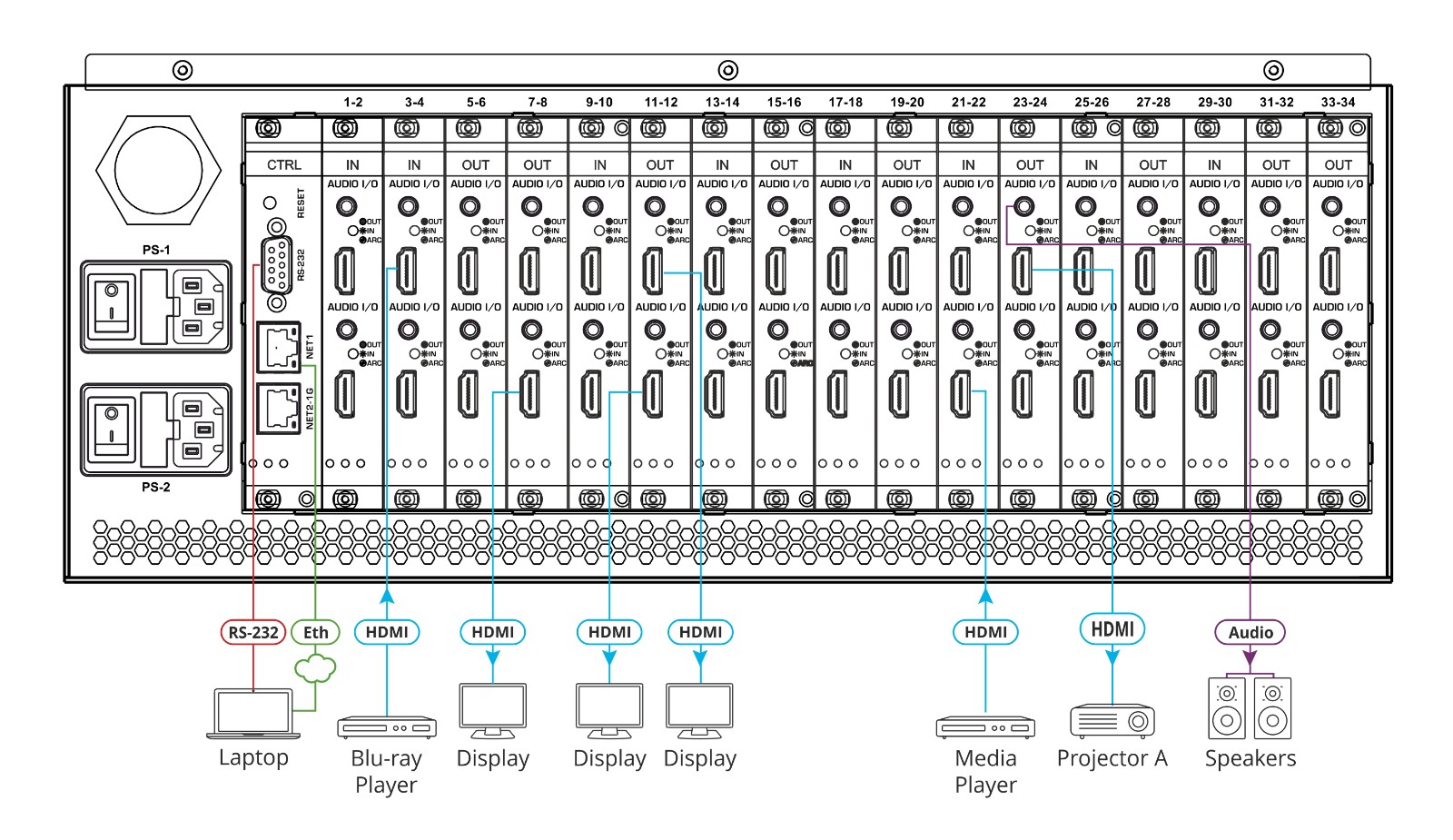 - 輸入:最大34路,輸出:最大34路
